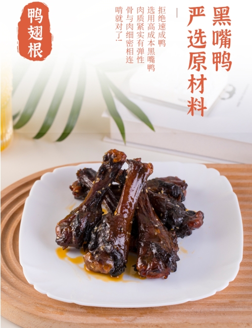 小木鴨醬板鴨目前主要提供鴨脖、鴨翅、翅中等鴨副產(chǎn)品,可以作為休閑小吃,也可以作為酒席上的下酒菜肴,開(kāi)袋即食,攜帶方便,老少皆宜,冷熱可食,冷食鮮美可口,熱食醬香醇厚。除此之外,醬板鴨的營(yíng)養(yǎng)價(jià)值豐富,具有活血順氣、健脾養(yǎng)胃、活血化瘀等功效,是四季養(yǎng)生保健、宴請(qǐng)賓朋嘗鮮、走親訪友、看望病人、孝敬長(zhǎng)輩的首選美食佳肴。