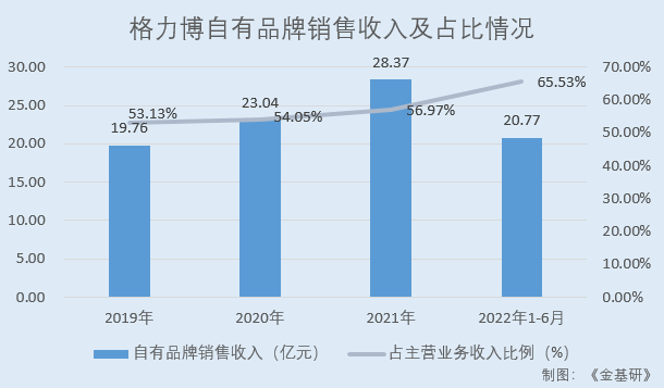 2019-2021年及2022年1-6月,格力博自有品牌銷售收入分別為19.76億元、23.04億元、28.37億元、20.77億元,占主營業(yè)務(wù)收入比例分別為53.13%、54.05%、56.97%、65.53%。