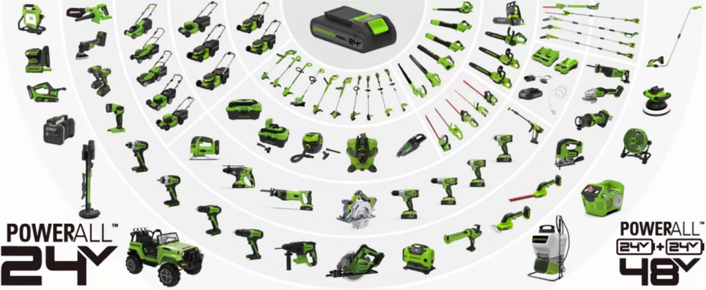 其中,24V電池包適用于所有g(shù)reenworks 24V系列工具,可以在不同工具之間無縫切換,享受自由靈活的無繩操作。兩塊greenworks 24V電池包串聯(lián)還能輸出雙倍動力,為48V系列工具提供持久續(xù)航,為DIY用戶創(chuàng)造更好的性能和價值。