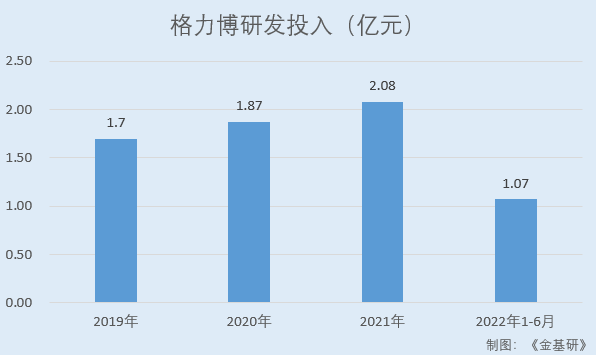 2019-2021年及2022年1-6月,格力博研發(fā)投入分別為1.70億元、1.87億元、2.08億元、1.07億元,占當(dāng)期營業(yè)收入的比重分別為4.58%、4.35%、4.16%、3.37%。