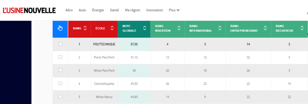 2020年L’usine nouvelle的工程師學(xué)院排名中,巴黎高科路橋大學(xué)位列全法第2位。此次共有130所工程師院校入榜。