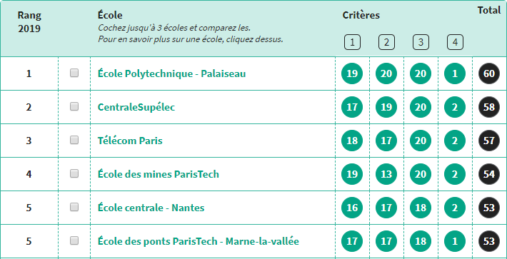 在L'étudiant學(xué)生報年度法國工程學(xué)院綜合排名中,共統(tǒng)計了近200個法國的工程師學(xué)院,其中巴黎高科路橋大學(xué)位列全法第4位。