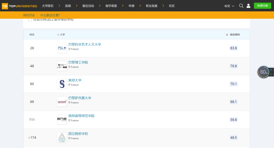 2023年QS世界大學(xué)排名榜中,巴黎高科路橋大學(xué)位列全球第174位,相比2022年提升了73位。在法國院校排名中居第6名。該排名榜涵蓋了世界85個國家的1400所院校。