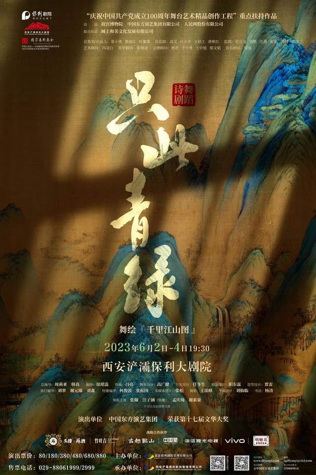 第二板塊“覓山河無(wú)垠”,將演出舞蹈詩(shī)劇《只此青綠》—舞繪《千里江山圖》,該舞劇作為現(xiàn)象級(jí)舞劇,自演出以來(lái)開(kāi)票秒罄,一票難求。該舞劇以“詩(shī)劇”為體裁,虛構(gòu)出一個(gè)時(shí)空交錯(cuò)的故事,現(xiàn)代的故宮研究員在《千里江山圖》即將展出之際,循著“展卷、問(wèn)篆、唱絲、尋石、習(xí)筆、淬墨、入畫(huà)”的篇章綱目,走進(jìn)少年天才希孟心中,“青綠”則成為展卷人與希孟之間的連結(jié)。引領(lǐng)觀眾徜徉在富有傳奇色彩的中國(guó)傳統(tǒng)美學(xué)意趣之中,致敬著中華優(yōu)秀傳統(tǒng)文化。