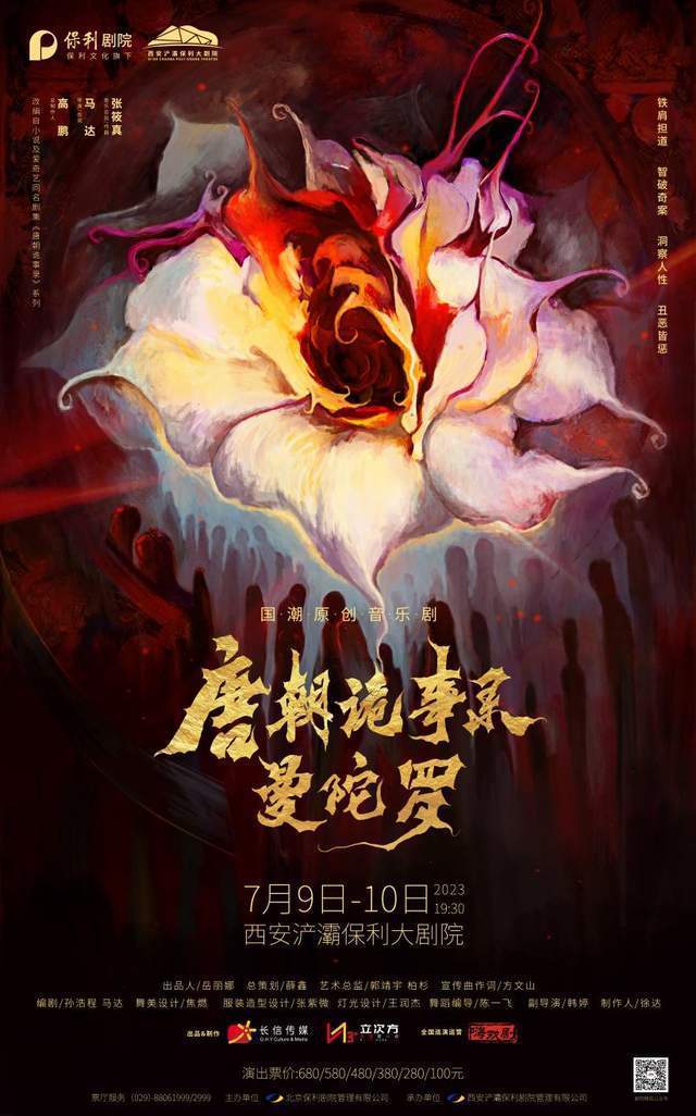 第三板塊“覓知音同伴”將會(huì)帶來(lái)國(guó)潮原創(chuàng)音樂(lè)劇《唐朝詭事錄之曼陀羅》,風(fēng)雪夜、奇花顯,走進(jìn)大唐共同尋覓案件真相。