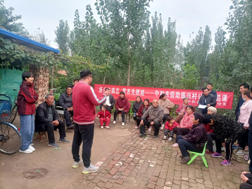 河北威縣,中和農(nóng)信當(dāng)?shù)胤种г诮M織的“助振興村”公益賦能活動,為農(nóng)戶進行種植知識培訓(xùn)。