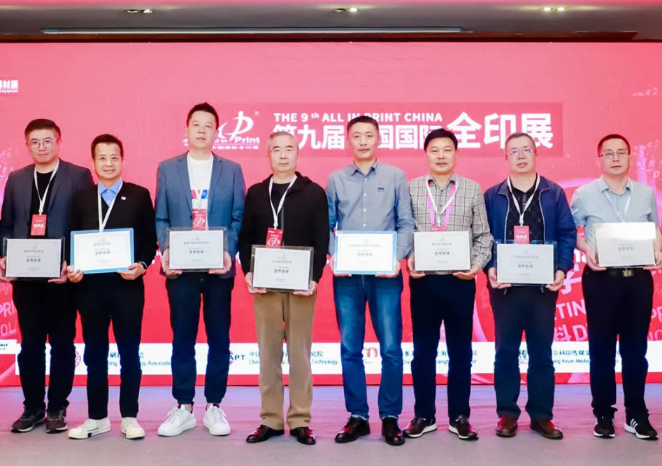 發(fā)布會最后,現(xiàn)場舉辦了熱烈的第九屆中國國際全印展合作伙伴授牌儀式,為到場的協(xié)會合作伙伴授牌,第九屆全印展將與全球合作伙伴達成更有效、更緊密的合作機制,凝心聚力,共創(chuàng)共贏。