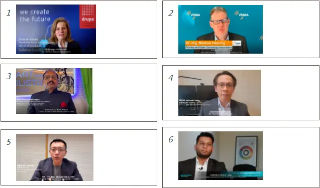 隨著海外市場對中國制造需求的逐步回歸,國內(nèi)外的合作伙伴也通過云端對本次發(fā)布會表示關(guān)注。drupa展、德國機械設(shè)備制造業(yè)聯(lián)合會、印度膠印協(xié)會、香港印刷業(yè)商會、香港印藝協(xié)會、印度專業(yè)媒體Packaging & Labelling通過視頻分享了他們對于全印展的殷殷期望,并表示將繼續(xù)與全印展加深合作,繼續(xù)組織規(guī)模更大的買家團前來上海參觀。