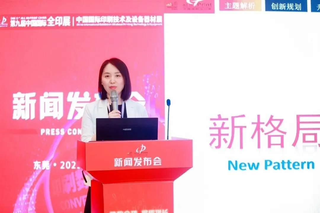 隨后,劉軼平女士在演講中詮釋了第九屆中國國際全印展主題的新內(nèi)涵,并詳細介紹了展會的創(chuàng)新規(guī)劃、招展情況、以及各項籌備進展。她指出,三年來我們所處的外部環(huán)境已經(jīng)發(fā)生了很大的變化,全印展啟用了更有活力和創(chuàng)意的新版主形象來代表展會內(nèi)容的精心打磨,但展會主題仍然沿用“新技術(shù) 新動能 新格局”,因為這三個關(guān)鍵詞隨著行業(yè)的不斷變化,有了更豐富的內(nèi)涵,可以代表全印展最想表達的印刷全行業(yè)新的趨勢和生態(tài)。2023年恰逢全印展20周年,目前,展會的各項準備工作都漸入佳境,全印展必將突破自我,在年末為全球印刷人奉獻一場更高品質(zhì)的“東方盛典”。