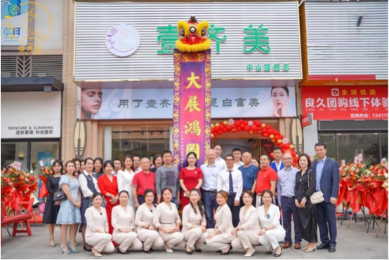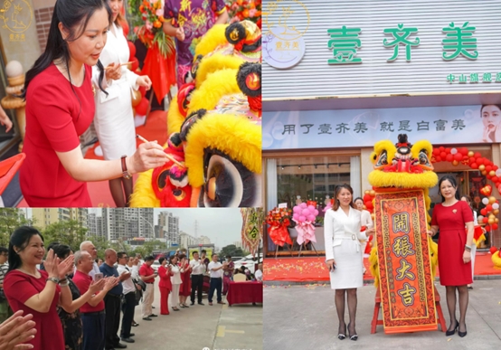 壹齊美總裁譽軒女士與坦洲旗艦店店長共同揭幕,壹齊美坦洲旗艦店“開張大吉”。