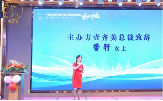 壹齊美總裁譽軒女士致辭,歡迎各界領(lǐng) 導(dǎo)、嘉賓、朋友們參加壹齊美坦洲旗艦店開業(yè)慶典。