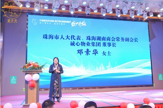 珠海湖南商會常務(wù)副會長、珠海市人大代表、珠海誠心物業(yè)集團董事長鄧素華女士 代表講話,祝賀壹齊美坦洲旗艦店開業(yè)。