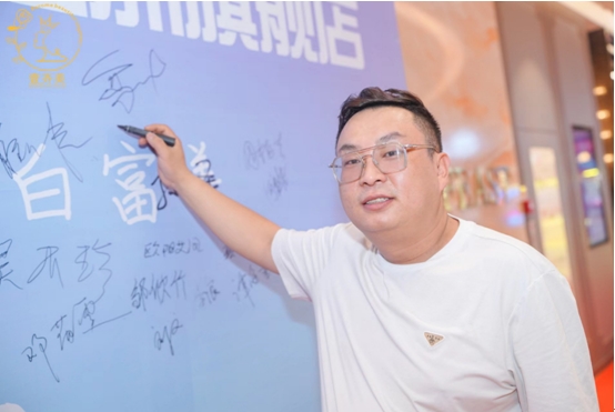 廣州奈斯直播供應(yīng)鏈有限公司總經(jīng)理高帥先生 在壹齊美坦洲旗艦店開業(yè)晚宴簽到墻簽名留念。