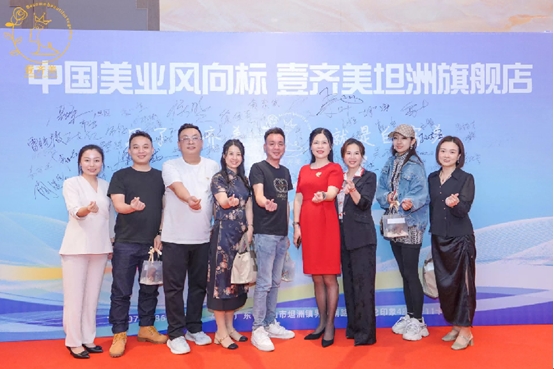 各界領(lǐng) 導(dǎo)及嘉賓在壹齊美坦洲旗艦店開業(yè)晚宴簽到墻簽名留念合影。