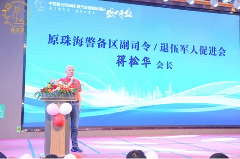 珠海警備區(qū)原副司令、珠海市退役軍人就業(yè)創(chuàng)業(yè)服務(wù)促進會 蔣松華會長致辭祝賀、祝賀壹齊美坦洲旗艦店開業(yè)。