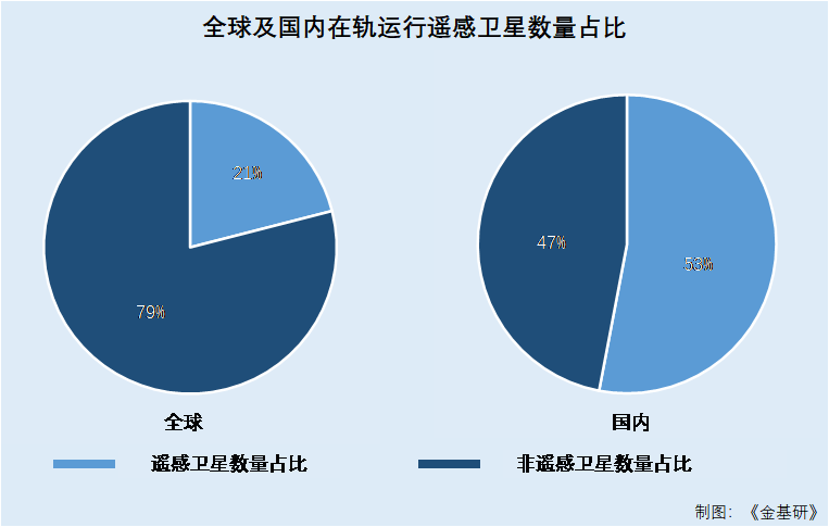 在軌運(yùn)行遙感衛(wèi)星方面,截至2021年末,全球在軌運(yùn)行衛(wèi)星4,852顆,遙感衛(wèi)星占比21%,中國(guó)在軌運(yùn)行衛(wèi)星499顆,遙感衛(wèi)星占比達(dá)53%。