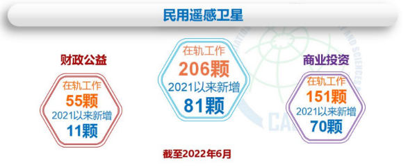新增數(shù)量方面,2021年至2022年6月,民用遙感衛(wèi)星共新增81顆,商業(yè)投 資性質(zhì)和公益性質(zhì)在軌工作遙感衛(wèi)星分別新增70顆、11顆。