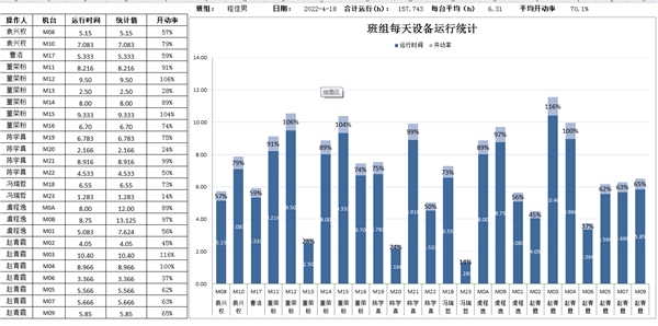 6)導入設備相關數(shù)據(jù),自動進行班組每天設備運行統(tǒng)計