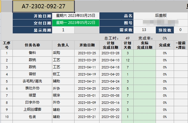5)數(shù)據(jù)結合甘特圖模板,有效展示每個工序任務精確的生產計劃周期