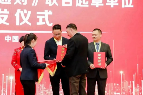 四川奕康堂電子商務有限公司董事長 程韻燃先生(右一) 以及其他優(yōu)秀企業(yè)代表榮獲《中國品牌影響力評價通則》團體標準起草單位殊榮