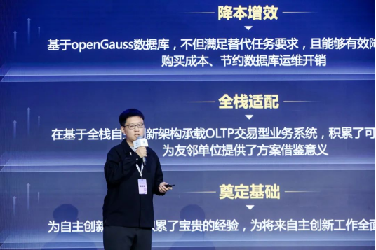 商業(yè)落地是開源項(xiàng)目前進(jìn)的驅(qū)動力,大會邀請了10家重量級客戶及合作伙伴分享基于 openGauss 的創(chuàng)新成果。云和恩墨北區(qū)行業(yè)架構(gòu)部副總經(jīng)理江寧聯(lián)合民生銀行數(shù)據(jù)庫專家孔再華在主論壇發(fā)表了題為《奮楫篤行,臻于至善 - 民生銀行自主創(chuàng)新數(shù)據(jù)庫能力構(gòu)建》的演講??自偃A首先談到,在自主創(chuàng)新的探索中,各行業(yè)普遍面臨著一些問題,如遷移前的數(shù)據(jù)庫選型復(fù)雜,數(shù)據(jù)庫種類、架構(gòu)、路線多;遷移過程艱辛,任務(wù)重工期緊,不確定性多,難以把控;遷移后又面臨管理雜亂,新數(shù)據(jù)運(yùn)維體系建設(shè)和多種異構(gòu)數(shù)據(jù)庫同時(shí)管理的訴求。這就需要不止對數(shù)據(jù)庫產(chǎn)品的技術(shù)考量,同時(shí)還要兼顧實(shí)現(xiàn)工期、成本與質(zhì)量。面對這些問題,民生銀行選擇通過 openGauss 社區(qū)的力量共同合作,其中云和恩墨為民生銀行提供了全生命周期的遷移工具套件和服務(wù)支持。