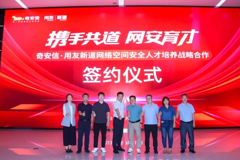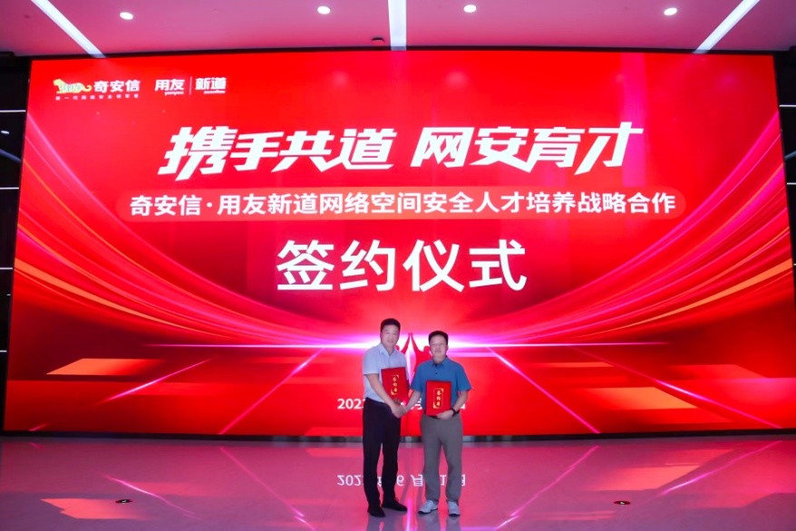 2023年6月21日,奇安信·用友新道網(wǎng)絡(luò)空間安全人才培養(yǎng)戰(zhàn)略合作簽約儀式隆重舉行,雙方達(dá)成了“合作共贏、篤行致遠(yuǎn)”的戰(zhàn)略共識,標(biāo)志著奇安信科技集團(tuán)股份有限公司與新道科技股份有限公司將共同攜手,開啟網(wǎng)安人才培育新征程。
