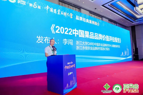 在本屆果業(yè)品牌大會(huì)的最后,舉行了中國(guó)果業(yè)品牌盛典,集中展現(xiàn)我國(guó)果業(yè)品牌建設(shè)新成果。浙江大學(xué)CARD農(nóng)業(yè)品牌研究中心發(fā)布《2022果品區(qū)域公用品牌價(jià)值報(bào)告和果品企業(yè)自主品牌價(jià)值報(bào)告》和《2022果品區(qū)域公用品牌聲譽(yù)報(bào)告和果品企業(yè)自主品牌聲譽(yù)報(bào)告》,全方位展示當(dāng)前我國(guó)果品行業(yè)品牌建設(shè)發(fā)展現(xiàn)狀。