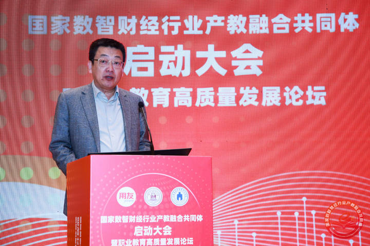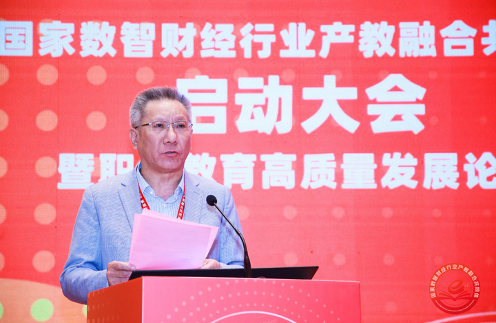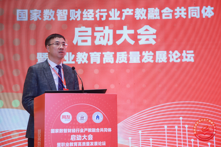 教育部職業(yè)教育與成人教育司副司長謝俐在會上作主旨報告。他指出,深化產(chǎn)教融合是現(xiàn)代職業(yè)教育體系改革的主線,產(chǎn)教融合體制機制的創(chuàng)新實踐一直是現(xiàn)代職業(yè)教育的核心議題,數(shù)字化轉(zhuǎn)型是金融財經(jīng)的行業(yè)重點發(fā)展方向。他表示,國家數(shù)智財經(jīng)行業(yè)產(chǎn)教融合共同體成立大會的舉辦是貫徹落實黨的二十大決策部署,落實教育部相關(guān)政策文件的重要舉措,是在職業(yè)教育新發(fā)展階段打造產(chǎn)教融合新載體、新范式的有益探索。