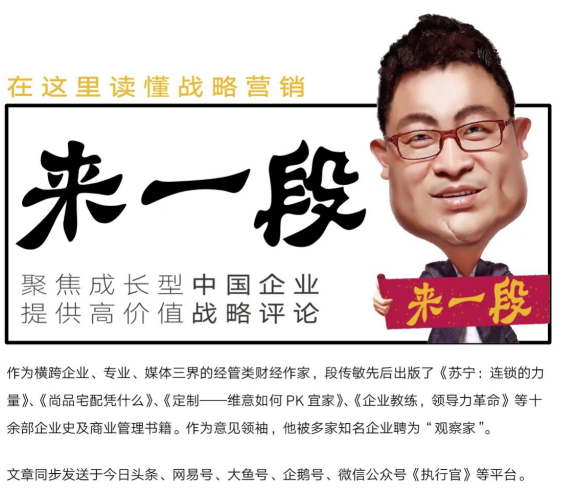 知名財經(jīng)作家,戰(zhàn)略營銷觀察家,《來一段》出品人,CCTV《大國品牌》欄目顧問,兼任多家企業(yè)戰(zhàn)略營銷顧問。