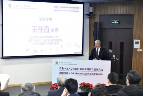 香港中文大學(深圳)新醫(yī)學發(fā)展研究院是香港中文大學與北京協(xié)和醫(yī)院及中林國控實業(yè)集團有限公司共同合作推動設立,致力于腦科學和神經醫(yī)學、AI與數(shù)字技術及機器人納米機器人在臨床和藥物開發(fā)領域的應用、中醫(yī)中藥傳承創(chuàng)新發(fā)展、民族醫(yī)藥的傳承與現(xiàn)代體系化、天然來源生物醫(yī)藥開發(fā)的高級別的產學研一體化研究與轉化平臺。新醫(yī)學院得到了國內外頂級的科學家團隊的支持,蒲慕明院士、徐揚生院士(校長)、蘇國輝院士、唐本忠院士、周良輔院士、吉訓明院士,中國神經外科領頭人王任直教授,澳門大學葛偉副校長,中科院自動化所徐波所長,哈工大機器人研究所趙杰所長以及由杜洋教授領銜的諾貝爾獎得主科比爾卡創(chuàng)新藥物開發(fā)團隊和部分國內知名臨床醫(yī)學家等都以不同方式出席活動并將在新醫(yī)學院平臺上協(xié)同工作推動新醫(yī)學的研究和轉化。