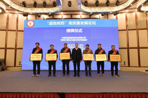 仲景宛西制藥董事長(zhǎng)、總經(jīng)理孫鋒為仲景宛西制藥股份有限公司“優(yōu)秀中藥材共建共享示范基地”授牌。