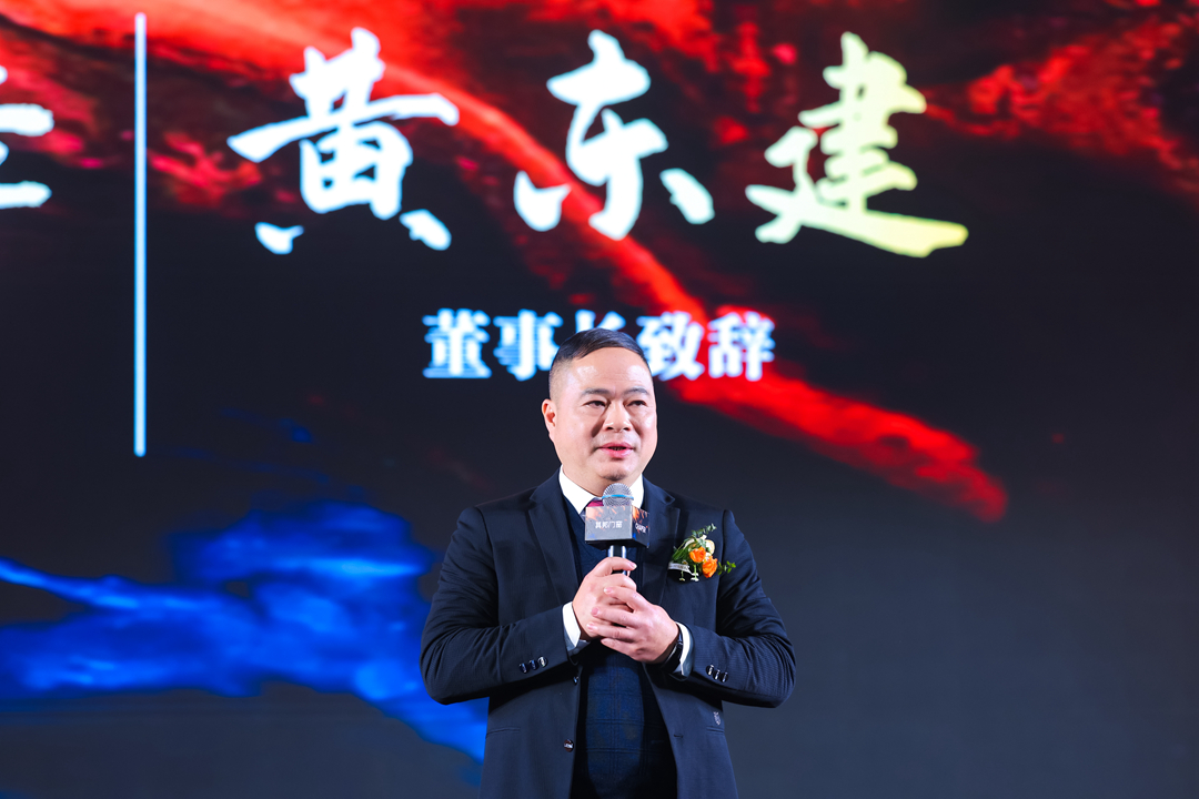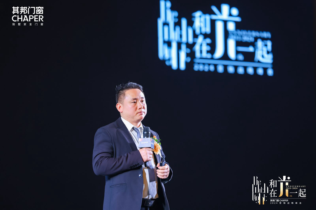 會議伊始,由其邦門窗董事長黃東建致辭拉開序幕。一束光從暗黑中落下,黃董在臺上深情哽咽回憶并娓娓道來。在其邦門窗走過11個年頭的過往點滴,自己既是丈夫、是父親、也是追光人。縱然創(chuàng)業(yè)之路不好走,錯過了許多陪伴家人的時間,但每當(dāng)想起所有創(chuàng)業(yè)伙伴們,想起大家共同努力獲得美好的成果,那么一切再苦再累也值得。