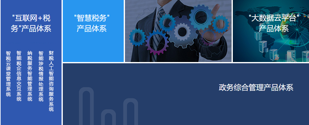 我們?nèi)闹铝τ谝远愂宅F(xiàn)代化為目標(biāo),以稅收征管改革為抓手,以數(shù)據(jù)管稅為引擎,引入“大數(shù)據(jù)”理論和“互聯(lián)網(wǎng)+”模式,構(gòu)建了“互聯(lián)網(wǎng)+稅務(wù)”產(chǎn)品體系、“智慧稅務(wù)”產(chǎn)品體系、“大數(shù)據(jù)云平臺”產(chǎn)品體系以及政務(wù)綜合管理產(chǎn)品體系,為稅收現(xiàn)代化提供強大的信息技術(shù)支撐。
