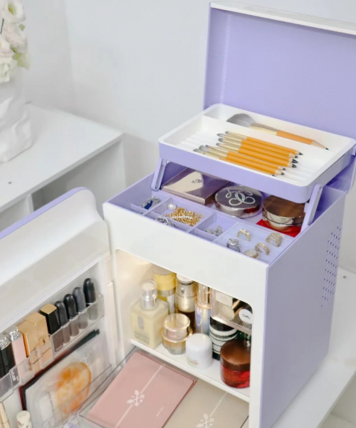 的確使用一段時(shí)間之后,我對(duì)歌嵐養(yǎng)膚美妝冰箱真的是越來(lái)越愛(ài)啊,它功能方面的表現(xiàn)真的是讓人嘎嘎滿(mǎn)意。收到歌嵐養(yǎng)膚美妝冰箱之后,我就把口紅、水乳、精華統(tǒng)統(tǒng)放進(jìn)去,不得不說(shuō)這款是真的非常能裝,冰箱頂部還有專(zhuān)門(mén)放置化妝工具和首飾的地方,當(dāng)然了顏值還非常高,星黛紫的顏色特別夢(mèng)幻,一下子就戳中了我的少女心。