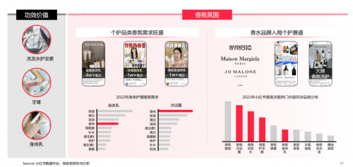 比如,用戶將全身需求細(xì)分,追求從頭到腳的精致;更追求悅己的感受,比如在身體護(hù)理中,作為悅己體驗,「香味」成為身體護(hù)理主要訴求之一,在《趨勢報告》中,2022年站內(nèi)身體護(hù)理搜索需求下,「香味」超越「保濕」成為沐浴露的首要訴求;同時,對場景化需求熱度也不斷攀升,白天關(guān)注身體每個細(xì)節(jié)的好狀態(tài),晚間則需要沉浸式護(hù)理來解壓。