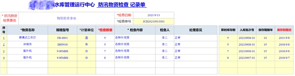 防汛物資基礎(chǔ)資料如上圖示。 防汛物資基礎(chǔ)資料有幾個重要信息: 1)定額儲備數(shù)量。根據(jù)規(guī)定該物資應(yīng)該儲備的最低庫存量; 2)保存期限(年)。確定每個防汛物資的保存年限,便于對防汛物資的有效性做判斷,確保防汛物資的使用效能和效果; 3)養(yǎng)護周期(月)。有些防汛物資需要定期做養(yǎng)護,根據(jù)養(yǎng)護周期數(shù)據(jù),系統(tǒng)可以自動提醒需要做養(yǎng)護的物資和養(yǎng)護時間;上述這些重要信息,在防汛物資基礎(chǔ)資料這里維護好,后面所有業(yè)務(wù)環(huán)節(jié)直接引用即可,方便、快捷、準確。