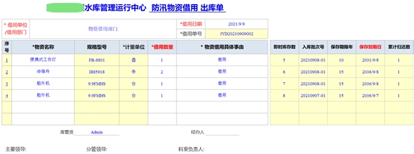 領(lǐng)用物資時,按照入庫批次和對應(yīng)的防汛物資進行列表選擇,可以看到該批次該物資的當(dāng)前即時庫存數(shù)量,系統(tǒng)自動控制,不允許負庫存領(lǐng)用出庫。 領(lǐng)用出庫單可以打印出來,相關(guān)人員簽字存檔。