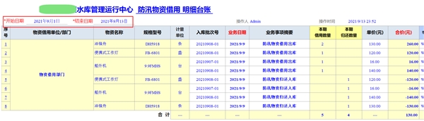 借用、歸還信息,一目了然。還可以看到尚借用在外的防汛物資的金額情況和效期情況。