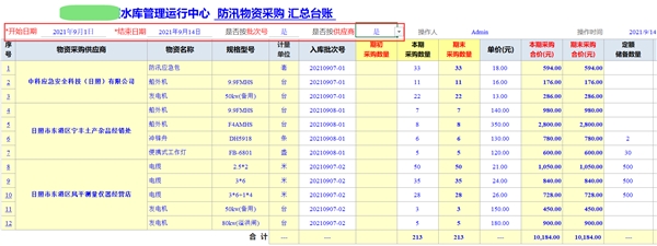 按任意時間段、入庫批次和供應(yīng)商查看所有物資的采購匯總情況。
