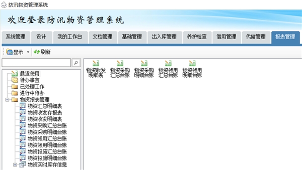 勤哲excel開發(fā)平臺包含物資基礎(chǔ)管理、出入庫管理、養(yǎng)護檢查、借用管理、代儲管理,報表臺賬管理等功能模塊。從物資的采購、驗收、入庫、檢查、維護、出庫、報廢整個流程進行了電子檔案記錄整理,配備了物資的養(yǎng)護、報廢、缺額提醒功能。該系統(tǒng)的最 大優(yōu)勢就是快速查詢統(tǒng)計分析數(shù)據(jù),自動生成相關(guān)報表和臺賬,把防汛物資管理涉及到的各種報表和臺賬,都設(shè)計開發(fā)到系統(tǒng)里,便于用戶更加高效、準確、方便的獲得需要的信息,將之前的所有的手工臺賬和報表全部替換為系統(tǒng)自動生成,大大提高了物資的管理效率。