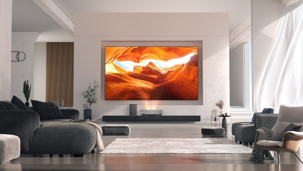 近年來,大屏化風(fēng)潮席卷家庭客廳——奧維云網(wǎng)數(shù)據(jù)顯示,80吋+大屏電視產(chǎn)品在2021年及2022年均呈現(xiàn)逆市增長(zhǎng)態(tài)勢(shì)。2022年,在2萬元以上98吋+超大屏市場(chǎng),海信激光電視銷售額占有率達(dá)到33%,大屏激光電視正在迭代千家萬戶的客廳生活。擁有100英寸超大屏幕的100L5G成為用戶打造客廳“IMAX影院”的首選,百英寸激光巨幕沉浸觀影更為震撼。