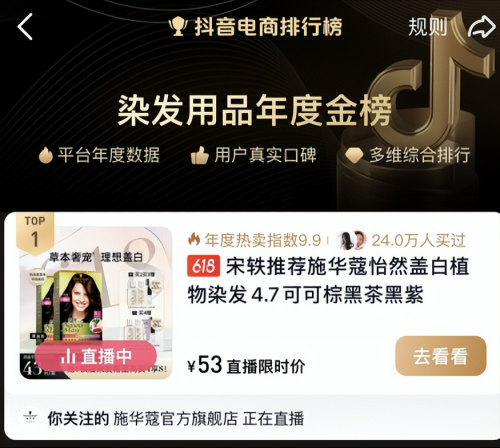2023年618購(gòu)物狂歡節(jié)火熱進(jìn)行中,麗人麗妝強(qiáng)勢(shì)賦能合作品牌施華蔻實(shí)現(xiàn)天貓、抖音“兩開花”。明星單品怡然染發(fā)霜分別登頂天貓染發(fā)膏熱賣榜、抖音染發(fā)用品年度金榜。得益于麗人麗妝的精細(xì)化運(yùn)營(yíng)能力,施華蔻抖音官方旗艦店2023年全店銷售額同比去年同期增長(zhǎng)577%。此外,施華蔻多款產(chǎn)品也登上天貓洗發(fā)水熱賣榜、修護(hù)洗護(hù)套裝熱賣榜榜單前列。