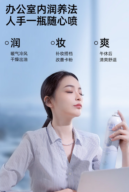 對(duì)于長(zhǎng)時(shí)間待在空調(diào)環(huán)境里辦公的職場(chǎng)人員來(lái)說(shuō),補(bǔ)水噴霧一定是辦公室內(nèi)必不可少的神器。相較于護(hù)膚水、精華液等傳統(tǒng)的補(bǔ)水保濕產(chǎn)品,補(bǔ)水噴霧在便捷性、持效性、補(bǔ)水效果等方面具有天然優(yōu)勢(shì)。作為頤蓮品牌當(dāng)下的爆款單品之一,全新升級(jí)的頤蓮噴霧2.0采用三重玻尿酸黃金比例,逐層滲透,從肌膚表層-真皮層-皮膚基底層,使皮膚緊致肌膚長(zhǎng)久保濕鎖水。同時(shí)頤蓮噴霧2.0還添加了五大保濕成分及哥倫比亞冰川礦泉水,多重利好加持下,輕松解決空調(diào)環(huán)境下引起的肌膚干燥、肌膚水分流失過(guò)快等問(wèn)題。