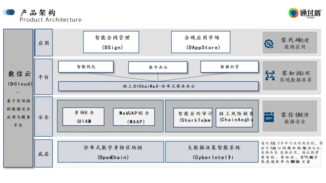 數(shù)信云4.0基于通付盾多年打造的分布式數(shù)字身份區(qū)塊鏈(OpenChain)及大數(shù)據(jù)決策智能(CyberIntelli)引擎,升級(jí)后的數(shù)信云4.0為開發(fā)者帶來三大全新數(shù)字化安全解決方案: