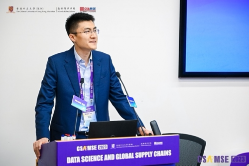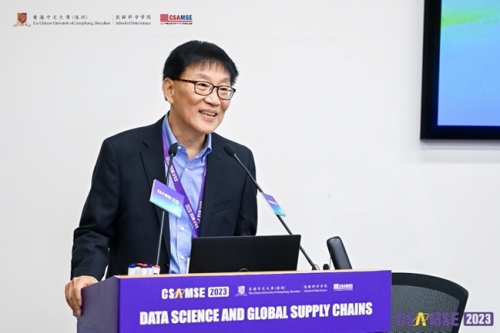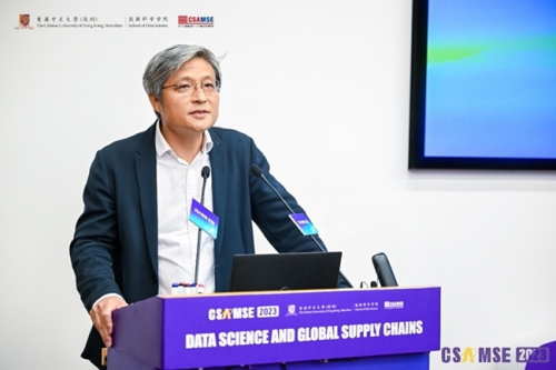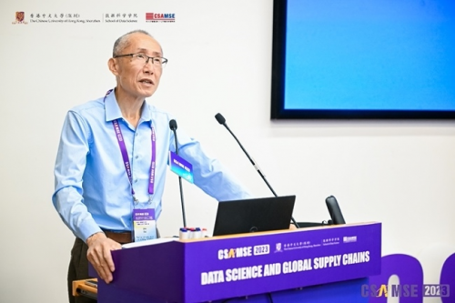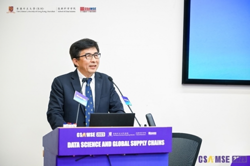 開幕式上,港中大(深圳)協(xié)理副校長(zhǎng)蔡小強(qiáng)教授首先作開場(chǎng)致辭。蔡校長(zhǎng)代表大學(xué)向現(xiàn)場(chǎng)的來賓表示熱烈的歡迎,并預(yù)祝CSAMSE 2023圓滿成功。蔡校長(zhǎng)也向大家介紹了港中大(深圳)的發(fā)展。大學(xué)雖成立僅9年,但一直受到深圳和香港政 府的大力支持。國(guó)際化是我們的優(yōu)勢(shì),多樣化是港中大(深圳)突出的特色之一,我們的教授來自世界各地。此次大會(huì)的舉辦,也是為促進(jìn)全球各界的交流。數(shù)據(jù)科學(xué)這一研究領(lǐng)域在過去十年內(nèi)蓬勃發(fā)展,并成為供應(yīng)鏈管理核心的驅(qū)動(dòng)力。但全球供應(yīng)鏈由于疫情及地緣政治等原因變的越來越不確定,而此次大會(huì)就是為這一領(lǐng)域提供平臺(tái)讓大家共話此議題并加強(qiáng)大家的合作。
