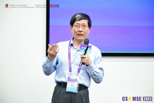 戴建崗教授也在開幕式上代表數(shù)據(jù)科學(xué)學(xué)院致辭。戴教授也介紹了學(xué)院國(guó)際化這一特色,學(xué)院師資包括美國(guó)、德國(guó)、法國(guó)、日本、以色列等全球各國(guó)優(yōu)秀教授,許多管理科學(xué)領(lǐng)域知名教授如Guillermo Gallego、Moshe Haviv、Konstantinos Courcoubetis都在數(shù)據(jù)科學(xué)學(xué)院師資之列。在所有的研究領(lǐng)域中,運(yùn)籌學(xué)和管理科學(xué)在建校之初即為港中大(深圳)的重點(diǎn)和實(shí)力領(lǐng)域。港中大(深圳)經(jīng)濟(jì)與管理學(xué)院和數(shù)據(jù)科學(xué)學(xué)院共有50多名教授在此領(lǐng)域從事教學(xué)與科研,學(xué)生們也熱衷于選擇此專業(yè)。我們非常希望與世界各地的學(xué)者們一起,讓運(yùn)籌學(xué)、管理科學(xué)為社會(huì)帶來更大的影響與價(jià)值。戴教授也誠邀參會(huì)嘉賓給學(xué)院提供寶貴的建議,也希望CSAMSE 2023成為各位新老朋友交流合作的好平臺(tái),歡迎各位再次訪問港中大(深圳)。