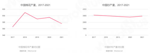 從供給端來(lái)看,中國(guó)新疆棉區(qū)、黃河流域棉區(qū)和長(zhǎng)江流域棉區(qū)每年棉花產(chǎn)量穩(wěn)定在560萬(wàn)噸以上,中國(guó)紗產(chǎn)量也穩(wěn)定在2000萬(wàn)噸以上,所以中國(guó)服裝主要原材料供給相對(duì)平穩(wěn)和密集,天然的產(chǎn)業(yè)優(yōu)勢(shì)顯著。