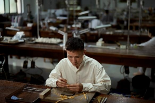 找尋、追溯,為保護(hù)中國(guó)的傳統(tǒng)非遺工藝,創(chuàng)始人遍尋中國(guó)各地臻寶首飾,花費(fèi)近20年時(shí)間籌備、興建潮宏基臻寶首飾博物館,館藏超過(guò)3000件臻品。在眾多首飾臻寶中,非遺花絲鑲嵌,其工藝之精湛,讓創(chuàng)始人為之著迷。這項(xiàng)傳承久遠(yuǎn)的中國(guó)傳統(tǒng)手工技藝,是“花絲”和“鑲嵌”兩種制作技藝的結(jié)合,也是燕京八絕里最繁復(fù)的貴金屬手工技藝,于2008年被納入國(guó)家級(jí)非物質(zhì)文化遺產(chǎn),卻一度瀕臨失傳。為了讓傳統(tǒng)文化新生,2009年,潮宏基創(chuàng)立“花絲鑲嵌工作室”,邀請(qǐng)名師出山授徒,先后培養(yǎng)了近百位年輕花絲工匠,竭力維護(hù)傳承非遺花絲工藝。