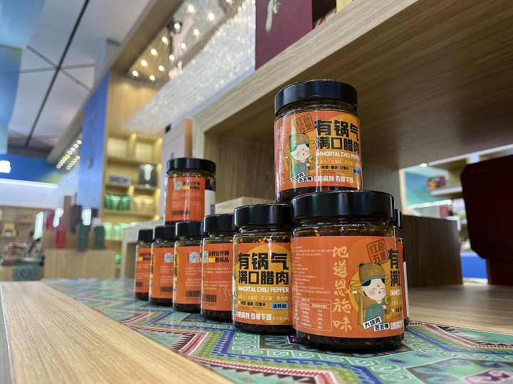 展會(huì)現(xiàn)場(chǎng),除了大家熟悉的恩施玉露、利川紅等知名恩施產(chǎn)品,許多新的恩施符號(hào)也閃亮登場(chǎng)。其中,鶴峰館中的一罐風(fēng)味拌飯醬因其口味獨(dú)特、百搭下飯而深受消費(fèi)者追捧?,F(xiàn)場(chǎng)負(fù)責(zé)人形容【這是一捧來自田間地頭的新鮮“鍋氣”】