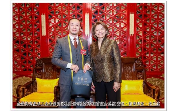 據(jù)悉,2023年哥斯達(dá)黎加首位女總 統(tǒng)勞拉·欽奇利亞·米蘭達(dá)曾在京會見遲師傅,對金裁神的西服工藝水平發(fā)出由衷的贊美,評價(jià)其高端西服定制水準(zhǔn)非同一般。此次,意大利前總理恩里克?萊塔也對“金裁神”一見鐘情,便足以說明一切。